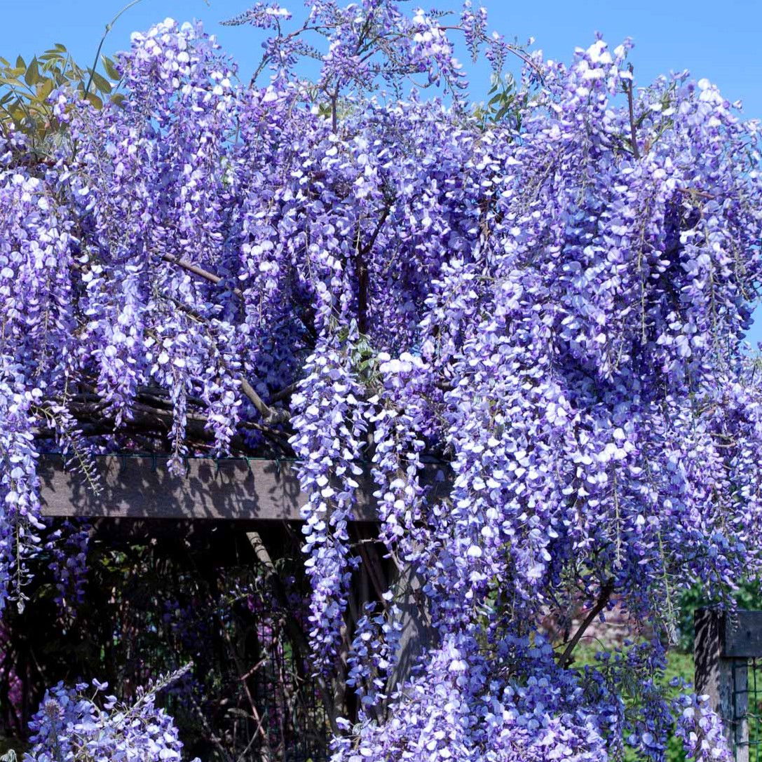 Japansk Blåregn ‘Macrobotrys’ Vækstforhold: Trives bedst i fuld sol, derfor ynder den en placering ved en sydvendt eller vestvendt mur, og gerne i god næringsrig havejord. Ved en ung alder anbefaler vi at binde blåregnen op til en espalier. Højde: